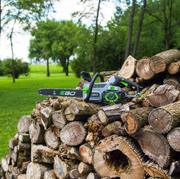 Our 18" EGO chainsaw delivers the power and performance of a 45cc gas chainsaw without the noise, fuss, or fumes. Powered by any EGO POWER+ 56V ARC Lithium™ battery, this cordless chainsaw delivers up to 300 cuts on a 4x4 when used with the 5.0Ah battery. Its high-efficiency brushless motor delivers 11,000 RPM for clean, efficient cuts. Bright LED lights on the front of the chainsaw illuminate your cut when working at dusk or in emergencies without access to lights. Its aggressive 18-inch bar and chain is designed for taking down large branches, stumps, and tall trees.