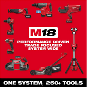 The Milwaukee M18™ Searchlight is equipped with a low battery indicator and has an IP54 rating for superior water and dust resistance in all weather. The high-quality LEDs never need to be replaced and are back by our limited lifetime warranty.