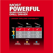 Our M12 FUEL™ 1/2" Drill/Driver is the Most Powerful Subcompact Drill Driver, the Most Compact in size, and provides the Fastest Speed Under Load. The POWERSTATE™ brushless motor delivers the most power for the capability to perform the widest variety of applications at high speed for unrivaled subcompact performance. At only 5.9" in length, this portable drill is the shortest solution in class offering most access into tight spaces.