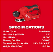 M12™ Brushless 2" Planer(2524-20) x1
