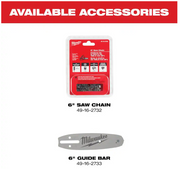 The MILWAUKEE® M12 FUEL™ HATCHET™ 6" Pruning Saw is part of the M12™ System which is fully compatible with over 100 solutions. In addition to the Pruning Saw (2527-20), this product includes (1) Oregon 6" Bar & Chain, (1) Scabbard, and (1) Scrench.