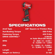 Our new 3/8” Stubby Impact Wrench delivers the Most Power, Is Lighter Weight & More Compact while delivering 50% Faster Application speeds. The POWERSTATE™ Brushless Motor Delivers 0-3,000 RPM with up to 550 ft-lbs of Nut Busting Torque, allowing the removal of the most corroded and stubborn applications.