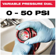 The tool is designed for 1"-4" drain lines and has the power to clear up to 35 ft. past vent stacks and tees. The drain cleaning air gun has a variable pressure dial giving you complete control when working on delicate pipe systems. Powered air flushes water out of pipes, completely removing grease and sludge from pipe walls.