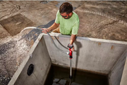 Our Milwaukee® M12™ Stick Transfer Pump delivers superior filtration for uninterrupted pumping in catch basins, water meter boxes, trenches, sump pump pits, and more. Featuring a 36” submersible aluminum barrel, this transfer pump provides the extension needed to reach water at the bottom of trenches and difficult to reach areas. Equipped with HydroPass™ filter technology, its 360° filter maximizes flow in heavy debris, minimizing downtime caused by clogging.