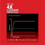 The compact, one-handed design provides superior control and the ability to make cuts in tight spaces. The dual gear counter balance mechanism provides up to 4x lower vibration than traditional reciprocating saws, resulting in faster cut-starts in metal and reduced user fatigue.