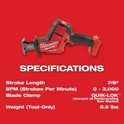 The Milwaukee 2719-21 M18™ FUEL™ HACKZALL® is the fastest cutting and most powerful one-handed reciprocating saw. Utilizing a POWERSTATE™ Brushless Motor and a best in class 7/8" stroke length, the M18™ FUEL™ HACKZALL® cuts up to 50% faster than competitors.
