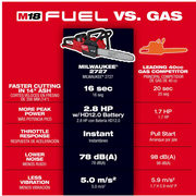 The Milwaukee® M18 FUEL™ 16" Chainsaw delivers the power to cut hardwoods, cuts faster than gas, and delivers up to 150 cuts per charge. The unit is designed to meet the performance, durability and ergonomic needs of professional landscape maintenance, power utility, and the installed M18™ user.