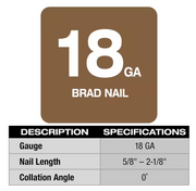 The 18 gauge nailer is compact in size, and very lightweight, providing you with unmatched access into tight spaces and limiting your fatigue throughout your day. The M18 FUEL™ 18ga Brad nailer delivers the pneumatic performance that professional carpenters and remodelers expect with the freedom and convenience of cordless.