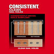 The combination of our POWERSTATE™ Brushless Motor and REDLINK PLUS™ Intelligence delivers you with unmatched fire rate with zero ramp-up time keeping you efficient throughout your day. Additionally, the cordless brad nailer operates using our REDLITHIUM™ Batteries (not included) and sealed compressed nitrogen to drive each nail, completely eliminating the cost of gas cartridges and maintenance associated with competitors’ nailers.