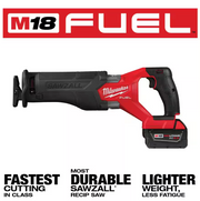Our M18 FUEL™ SAWZALL® Recip Saw is the next generation of legendary performance and durability, designed for the toughest applications on the job site. The MILWAUKEE® M18 FUEL™ SAWZALL® is the fastest cutting reciprocating saw in its class and leverages a POWERSTATE™ Brushless Motor to provide you with 3,000 SPM and a 1-1/4" stroke length for faster material removal.