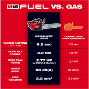 M18 FUEL™ technology allows the saw to reach full throttle in under 1 second providing ultimate control and cut faster than 35cc gas for increased application speed. The