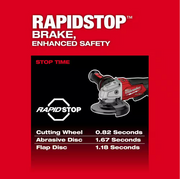 The RAPIDSTOP™ Brake provides stop times under 2 seconds with an abrasive disc. The M18 FUEL™ 4-1/2" / 5" Braking Grinder includes an electronic clutch for kickback protection, as well as overload protection to maximize motor life.