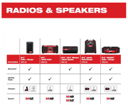 Compatible with all M18™ and M12™ Batteries or able to run off of AC power, the M18™/M12™ Wireless Jobsite Speaker maximizes versatility, functionality, and performance to set a new standard in high-definition jobsite sound.