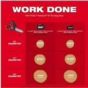 Our MILWAUKEE® M18 FUEL™ HATCHET™ 8" Pruning Saw delivers increased control & access, has the power to cut hardwoods, and is the fastest cutting pruning saw. This pruning saw is designed to meet the ergonomic, performance, and durability needs of the professional arborist, landscape maintenance professional, and power utility linemen.