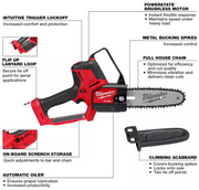 M18 FUEL™ technology enables the saw to reach full throttle in under 1 second and a variable speed trigger for ultimate control over the power range. This pruning saw features a lanyard loop, full house chain, easy access chain tensioner, automatic oiler, metal bucking spikes, onboard scrench storage, lanyard loop, and a climbing scabbard.