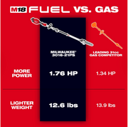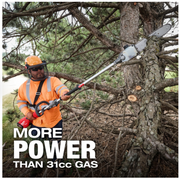 Designed to meet the needs of landscape maintenance professionals, our M18 FUEL™ 10” Pole Saw w/ QUIK-LOK™ provides you with more power than 31cc gas pole saws, reaches full throttle in under 1 second, and is part of the industry's most capable attachment system. The split boom cordless pole saw is made up of two components – the M18 FUEL™ Power Head w/ QUIK-LOK™ and QUIK-LOK™ 10” Pole Saw Attachment. This allows you to quickly swap out any of the 13 attachments on a single power head, delivering ultimate versatility and a lower cost of ownership.