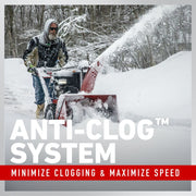 Steer yourself right (and left) with self propelled triggerless steering for fluid, tight turning—no triggers or levers required. Our exclusive Anti-Clogging System meters snow intake to reduce clogs and optimize clearing performance with no shear pins in sight. Instead, when our heavy-duty auger rolls into something hard, the engine purposely stalls to avoid damage.