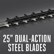 - 25” dual-action, laser cut double-sided steel blades for precise, clean cuts