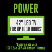 - Pass-through charging feature allows an EGO 56V ARC Lithium™ battery to charge via the 100W USB-C PD port while simultaneously powering devices