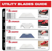 Milwaukee® General Purpose Utility Blades are designed to maximize cutting performance and durability in most common jobsite materials. Milwaukee utility blades are engineered to fit Milwaukee and most standard utility knives.