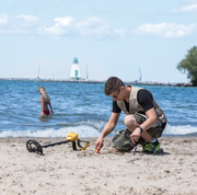 The Garrett Ace 250 rental is a metal detector that is lightweight and easy to use. It has a simple interface, a rugged design, and excellent detection depth. It has five search modes, including the ability to save your own custom pattern and eliminate undesired metallic targets. It also has a depth indicator, pinpointing feature, and a large LCD screen for easy identification of targets