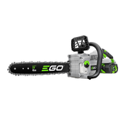 The EGO POWER+ 16” Chain Saw features an advanced, high-efficiency brushless motor that delivers power equivalent to a 40CC gas chainsaw without the noise, fuss, or fumes. Powered by any EGO POWER+ 56V ARC Lithium™ battery, this cordless chainsaw delivers up to 130 cuts on a 4x4 when used with the recommended 2.5Ah ARC Lithium™ battery. The chainsaw features a tool-free chain tensioning system that allows fast, easy bar and chain adjustments through independent dials. These low-profile dials also allow the electric chainsaw to cut flush to the ground. Its 16-inch bar and chain with 20m/s chain speed delivers clean, efficient cuts while its automatic oiling system keeps the saw lubricated throughout the cutting process. For added control and safety, the saw is equipped with robust metal bucking spikes and kickback brake with an easy-to-see brake position indicator. Experience Power Beyond Belief™ without the noise, fuss, or fumes.
