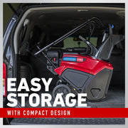 The compact design allows for easy storage and leaves room in the garage for what matters. Plus, you have peace of mind knowing that Toro stands behind this product with a full warranty, not just limited coverage. Count on it.The fold down handle makes storage or transport simple. Storage dimensions: 29.5 in. x 18.7 in. x 27.5 in. (75 cm x 48 cm x 70 cm).