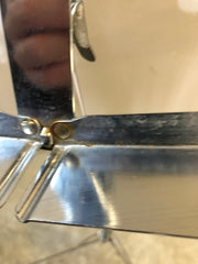 This USA made Hamilton folding compact stainless steel music stand is used, in great condition. The tripod base is missing 1 rubber foot pad. You can see pictures for details.