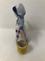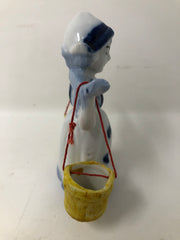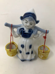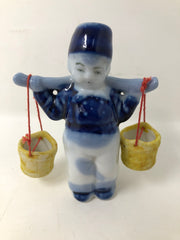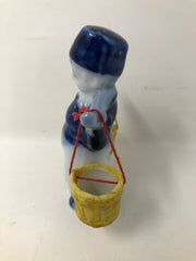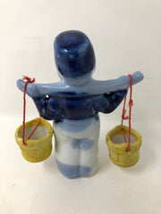 Vintage Japan Dutch Boy Girl Blue White Pail Milk Maid Water Buckets Yoke